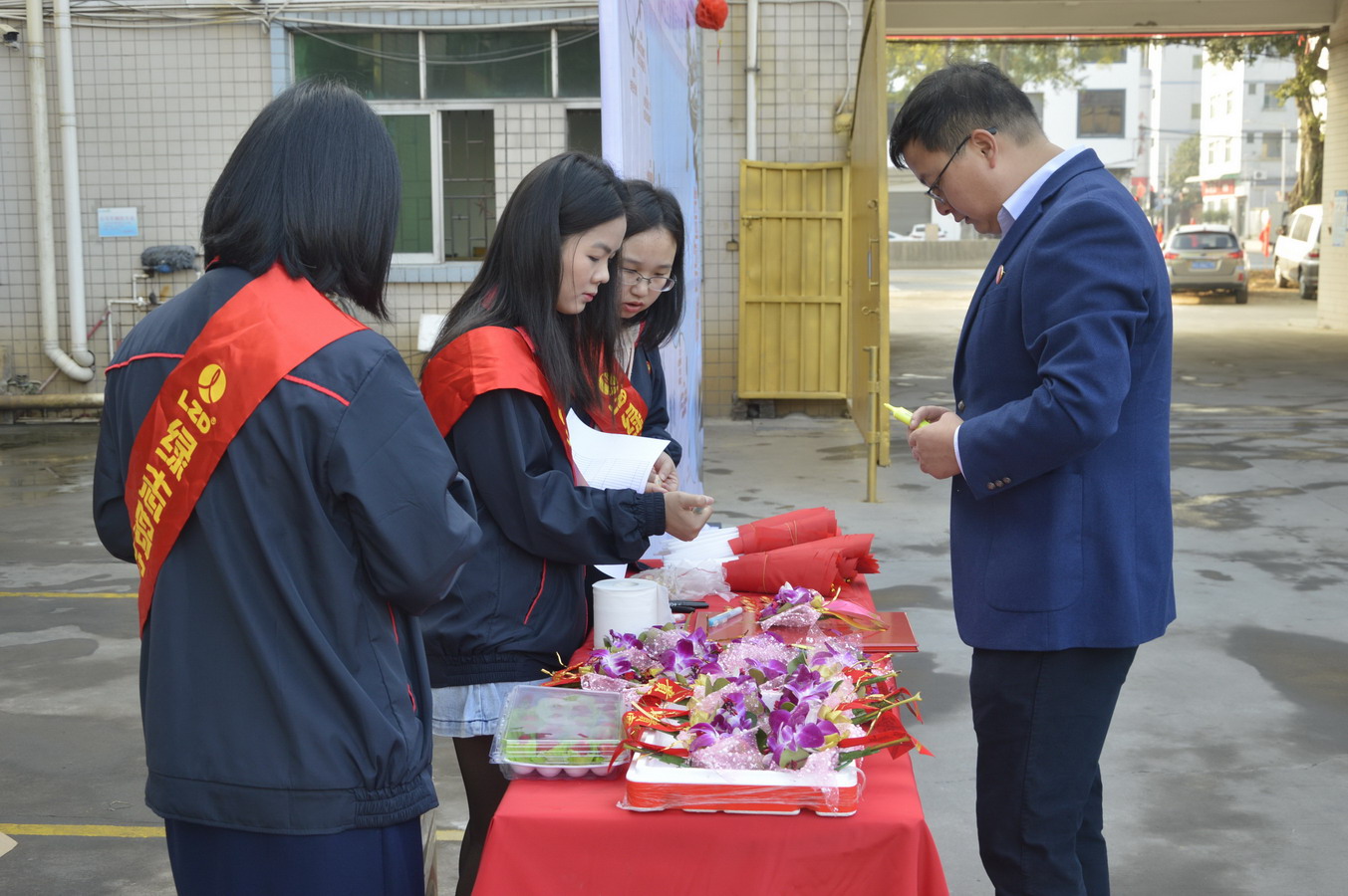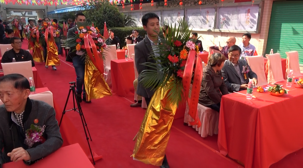 ▲綠志島總經理賴高平先生為嘉賓寫花籃語